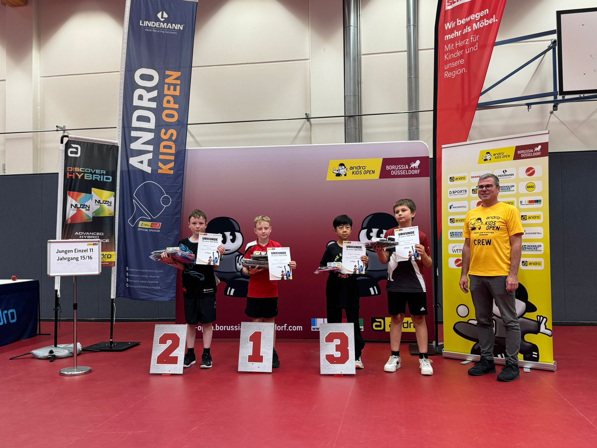 Das Teilnehmerfeld war mit 950 Kindern- und Jugendlichen zwischen sechs und 18 Jahren aus 20 Nationen wieder voll besetzt. Dazu noch einmal so viele Betreuer und Eltern und 100 freiwillige Helfer. Gespielt wurde an 44 Wettkampftischen in drei Hallen. Und am Ende wurden 108 Pokale auf dem Siegertreppchen vergeben. „Diese Zahlen beeindrucken mich immer wieder, spiegeln aber nicht diese außergewöhnliche Stimmung, dieses großartige Miteinander und die Freude an unserem Sport“, so Borussia Düsseldorfs Manager Andreas Preuß. „Die andro Kids Open sind unbeschreiblich und das seit 1988.“