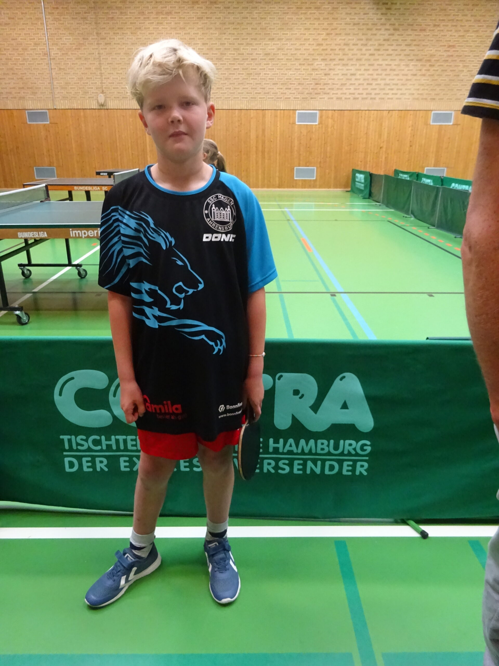 Dann wurden die Platzierungen 1-6 ausgespielt und unsere Jungs waren dabei. In einem dramatischen Einzel von Piet und Elias hat PIET im 5ten Satz gewonnen gegen Elias. Super Ballwechsel Angriff( Piet) gegen Abwehr (Elias) begeisterten die Zuschauer. Im Einzel von Elias gegen Schwarzenbeks Julian Gwosc setzte sich der Schwarzenbeker durch. Leider! Piet ist mit einem 3ten Platz eventuell bei der Landesrangliste U11 am 13. 09. 2025 dabei. Trotzdem: beide Jungs – völlig erschöpft – haben hervorragend gekämpft und ein super Turnier gespielt. Die beiden Väter und Coaches Björn Willemsen und Christoph Ruck hatten ihren Spaß.