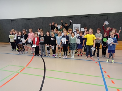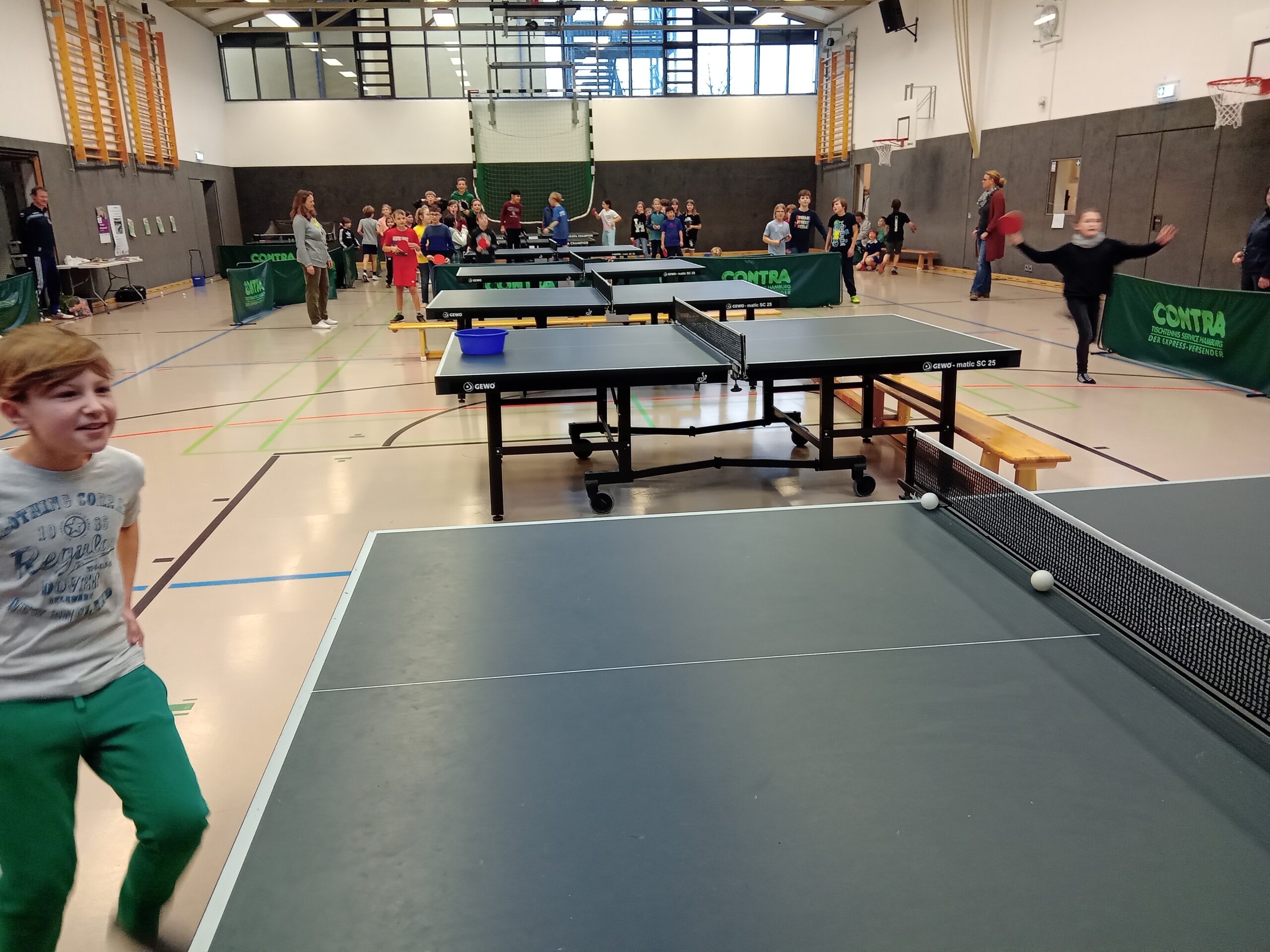 Mit insgesamt 54 Kindern aus den 4. Klassen starteten heute die Schulmeisterschaften der Grundschule am Hagen. Zum Programm gehörten das Turnier, welches gespielt wurde in 2 Gewinnsätzen, TT-Roboter, Ballzirkus und zum Abschluss „Rakete“ 4 A gegen 4 B. Stimmungsvoller Auftakt, hohe Geräuschkulisse und unsere Helfer am Limit. Was für ein Spaß. Die Siegerinnen und Sieger sind qualifiziert für das Finale am Donnerstag, 25. Januar 2024. Alle Kinder wurden zum Training eingeladen, um an den Mini-Meisterschaften 2023/2024 teilzunehmen.