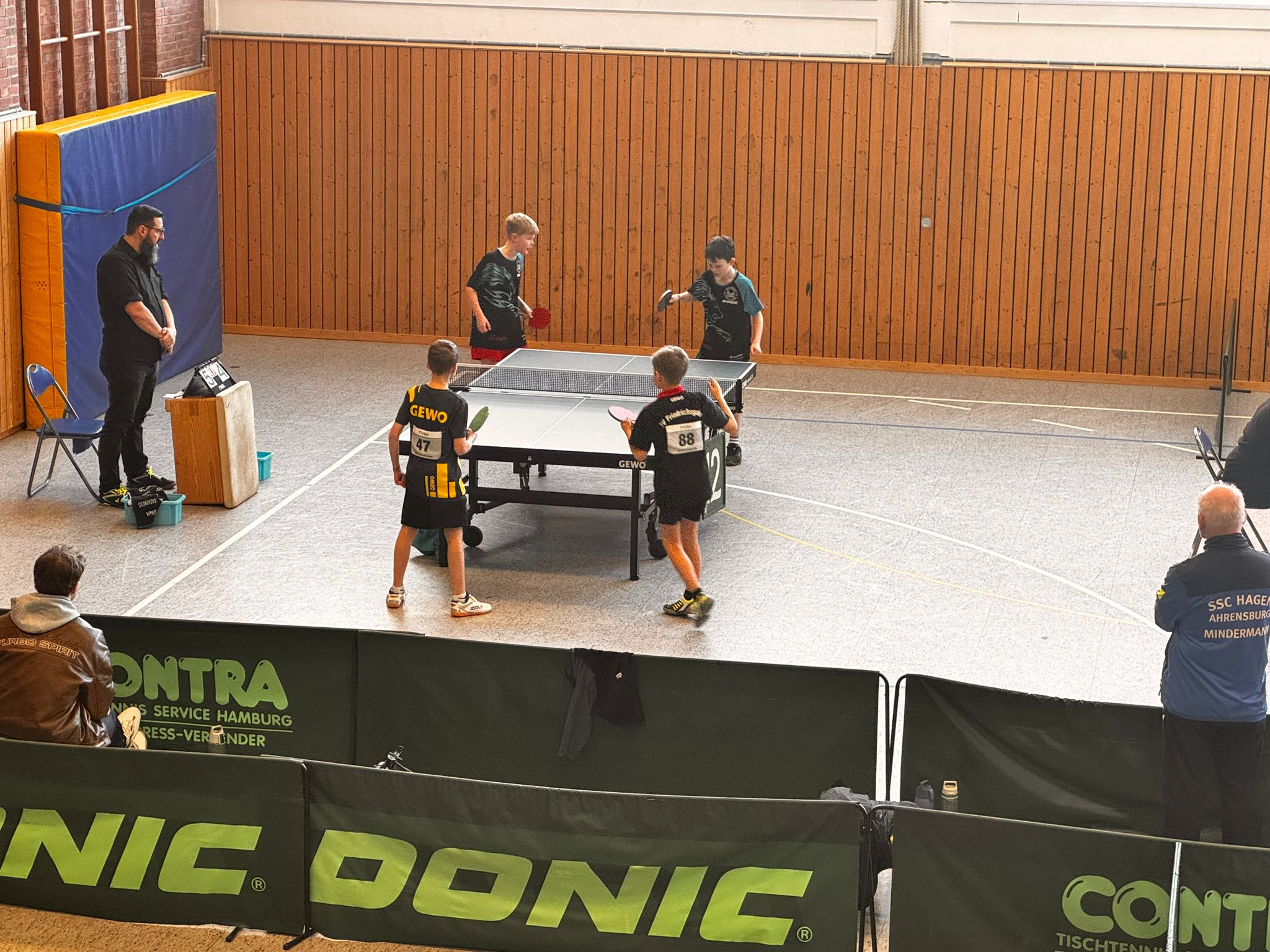 Als Bezirksmeister im Einzel und Doppel starteten Elias Ruck und Piet Willemsen in der Coventry Halle in Kiel bei den Landesmeisterschaften U11. Begleitet von den Eltern Ruck und Björn Willemsen sowie Coach Hannes Schubert gingen unsere Jungs in ihrer jeweiligen 5er Gruppe an den Start. Piet Willemsen belegte den 2. Platz in seiner Gruppe und Elias Ruck belegte den 3. Platz. Beide waren also qualifiziert für die K.O.-Runde.